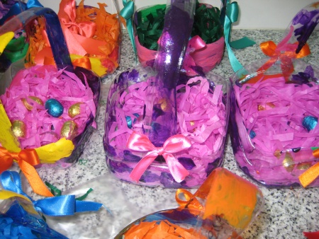 Pequenos grandes artistas do Jardim de infância, da sala 1,mostram a sua arte na reciclagem de materiais para a realização da sua cestinha de Páscoa. Com a utilização de garrafões de água, tinta e papel elaboraram a lembrança da Páscoa. |