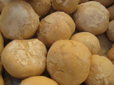 Se brincar ao faz de conta é poder viajar, sem sair do lugar, hoje brincamos aos padeiros. Foi só dar asas à imaginação com água, farinha, sal e fermento à mistura com muita alegria lá fizemos o nosso pão. Receita: 2kg de farinha de padeiro; 2 colheres de sopa de fermento de padeiro; 1 l de água; 1 colher de sopa de sal Misturar tudo num recipiente, amassar muito bem, fazer bolinhas e colocar num tabuleiro polvilhado com farinha. Dar um lanho no pão, passado 3 horas virar o pão ao contrário e meter ao forno +- 20 minutos a 200 graus. |
