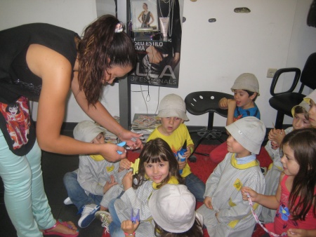 Se imaginar é poder viajar, é poder idealizar sem sair do lugar, então nós hoje imaginamos, idealizamos e concretizamos a nossa imaginação em realidade saindo para o exterior. Efetuamos uma visita de estudo ao salão de cabeleireira da mãe de uma menina da nossa sala. |