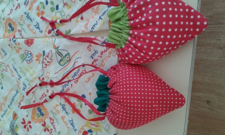 Os Jovens do Centro de Estudos para comemorar o dia da Mãe fizeram uns morangos muitos bonitos que se transformam em sacos muito práticos, ecológicos em tecido lavável para andar na mala da Mãe e usar na hora das compras. |