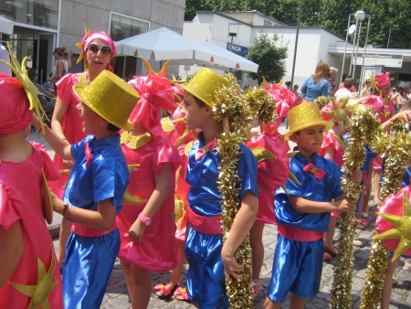 Decorreu na passada tarde de segunda-feira mais um desfile das marchas infantis, conhecido por ser um dos pontos altos das Festas Antoninas de Vila Nova de Famalicão. Fomos brindados com uma tarde quente e ensolarada, o que permitiu que milhares de pessoas se deslocassem ao centro da cidade para assistir a este desfile único e aplaudir as diferentes instituições participantes. Subordinado ao tema "Luz de santo António", desfilamos orgulhosamente pela nossa instituição, num verdadeiro ambiente de festa e entusiasmo, espalhando pelas ruas da nossa cidade, cor, brilho e muitos sorrisos. O desfile terminou nos jardins das piscinas municipais e, aproveitando as sombrinhas das árvores, descansamos um pouco e usufruímos de um maravilhoso lanche a fim de recuperar as energias perdidas. Para o ano há mais! |