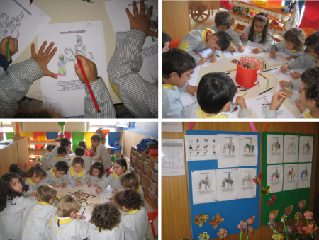 Este ano, o tempo brindou-nos com um belo dia de sol e calor, fazendo jus à verdadeira definição de Verão de S. Martinho. A manhã de hoje foi dedicada à realização de alguns trabalhos alusivos ao tema de S. Martinho. Começamos por ouvir a sua lenda que, com a ajuda de imagens, nos permitiu entender com clareza esta bonita história. Fizemos a decoração de uma castanha para levar para casa e, terminamos a manhã a pintar uma imagem que tão bem representa esta lenda, a imagem do soldado Martinho que, montado no seu cavalo, se prontifica a ajudar o mendigo. Manda a tradição que se festeje este dia comendo as famosas "quentinhas e boas”: as castanhas assadas. E, como a tradição ainda é o que era, estas não poderiam deixar de ser a nossa sobremesa no almoço de hoje! |