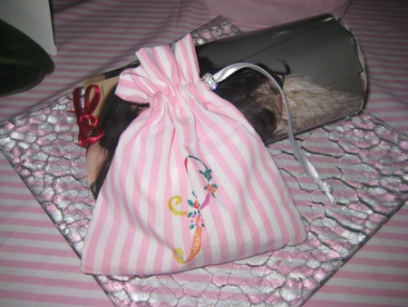 No final foram presenteadas com um saquinho de cheiro pintado pelas crianças.