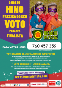 Convidamos todos a ver, ouvir e a votar no nosso hino através do número 760 457 359 (custo de 0,60€ + IVA) ou clicando no botão "partilhar" através do link http://www.apcoi.pt/heroisdafruta6/web/hinodafruta/?fs=&idhino=609