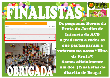 De entre as 480 escolas participantes, a nível nacional, o "Hino da Fruta da ACB" foi o mais partilhado no Facebook, contabilizando 620 partilhas, e o 9º mais votado através de televotação, elegendo-o desta forma um dos quatro finalistas do distrito de Braga.