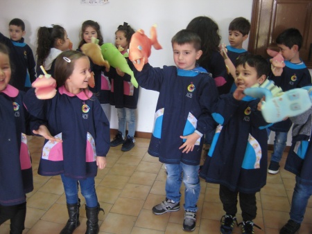 No âmbito das comemorações do Dia Mundial do Teatro e a convite da Divisão da Cultura do Município de Famalicão, as crianças finalistas do jardim de infância, na manhã de 27 de março, deslocaram-se à sede da junta de freguesia de Seide S. Paio para a realização de um workshop de marionetas de esponja. Este workshop, intitulado de “monstros marinhos” e orientado pela companhia de Teatro e Marionetas de Mandrágora, proporcionou a cada criança produzir a sua “criatura” animal e entre recortes, dobragens e colagens o resultado final não poderia ter sido melhor: brinquedos simples, originais e bem divertidos. Já no final do workshop, fomos desafiados a soltar a imaginação, criando e dramatizando uma pequena história que teve como “estrelas” principais as nossas marionetas. Este tipo de iniciativas são uma excelente ferramenta educativa, não só porque permite desenvolver a criatividade e imaginação dos mais pequenos, como também aperfeiçoa a capacidade de trabalho em equipa, a concentração e a comunicação. O nosso muito obrigada ao Município de Famalicão por este convite! |