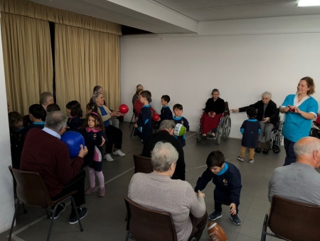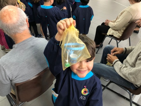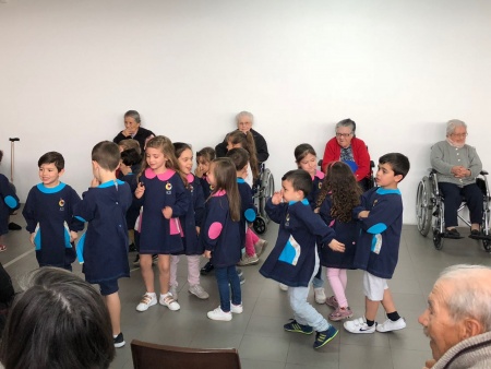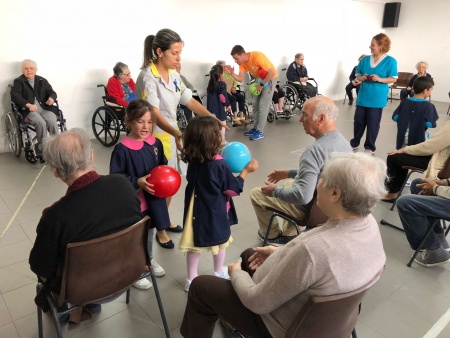 Na manhã de 16 de maio aguardava-nos, à porta da ACB, um autocarro que nos levaria até ao local de trabalho da mãe da Maria Miguel (uma das meninas da nossa sala): o Lar Jorge Reis - Santa Casa da Misericórdia de Famalicão. Após uma receção bastante calorosa por parte dos idosos, seguiu-se uma breve visita pelas instalações que terminou na sala onde, semanalmente, se realizam as aulas de ginástica e para a qual fomos desafiados a participar. Esta aula, dinamizada pelo professor e auxiliada pela animadora sociocultural foi bastante divertida. Depois de criadas todas as equipas (compostas por uma criança e um idoso) fomos, ao longo da manhã, realizando uma série de exercícios adaptados às potencialidades e limitações de cada um. No final da aula, os seniores presentearam-nos com um miminho, carinhosamente elaborado por eles, com recurso a materiais reciclados. Esta visita, realizada no âmbito do projeto educativo, deu-nos a conhecer de perto o trabalho desenvolvido por duas profissões: "Professor de ginástica" e " Animadora Sociocultural" e que neste caso em concreto estão interligadas e trabalham lado a lado ocupando e estimulando, da melhor forma possível, a atividade social e física dos seus idosos. Claramente esta foi uma atividade enriquecedora para ambas as gerações, onde a partilha de saberes, o convívio e o bem-estar gerado, potenciaram e estreitaram a criação de laços entre crianças e idosos. Deixamos o nosso agradecimento aos utentes e à equipa técnica do Lar, pela forma como nos acolheram e pelos maravilhosos momentos que nos proporcionaram. |