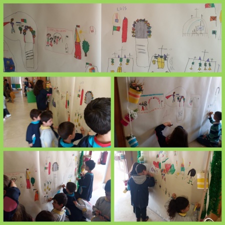 Chegamos ao mês dos Santos As boas-vindas lhes vamos dar De grinaldas, manjericos e balões O nosso Jardim vamos decorar. Em época de marchas e festas Um mural vamos fazer Marcadores na mão e muita imaginação Que bonitos desenhos vocês vão poder ver. |