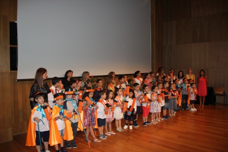 Realizou-se no final da tarde do dia 28 de junho, no Pequeno Auditório da Casa das Artes, a Festa de Finalistas das valências de Jardim de Infância e CATL. Num ambiente descontraído e com a presença de familiares e amigos, os nossos finalistas celebraram o fim de uma etapa e o começo de uma outra que se avizinha de mudanças e novos desafios. Para além das equipas educativas homenagearem os 22 finalistas de Jardim de Infância e os 15 finalistas de CATL com a entrega de uma faixa e um diploma, foram ainda apresentados dois vídeos que compilaram os momentos de alegria, aprendizagem e amizade que acompanharam os percursos das nossas crianças pela ACB. De salientar, este ano, a presença do grupo de 7 crianças Bi-finalistas do Jardim de Infância que participaram, juntamente com a equipa educativa, na entrega das faixas aos restantes colegas. A atuação dos finalistas com o “Hino da ACB” marcou, com emoção, o encerramento deste espetáculo com "chave de ouro". Aos protagonistas desta grande festa, desejos de muito sucesso e um futuro brilhante repleto de conquistas e oportunidades! |