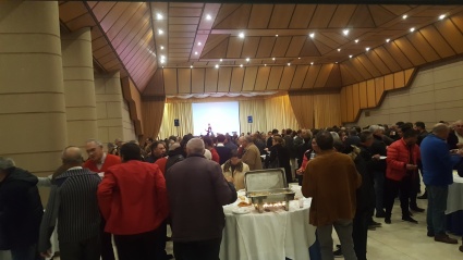 Mais de 300 associados da ACB reuniram-se no final da tarde de 15 de novembro, no Centro Cívico de Famalicão, para celebrar o dia de S. Martinho. Cumprindo a tradição, as boas-vindas deste magusto convívio foram dadas no exterior do Centro Cívico, através do pregão de D. Laurinda, "assadora" à antiga" que ofereceu aos presentes apetitosas e farruscas castanhas. Num ambiente animado com a atuação da cantora Joana Guimarães, mesas fartas de petiscos e bebidas, esta é uma noite por excelência de confraternização, boa disposição e reencontros entre associados. |