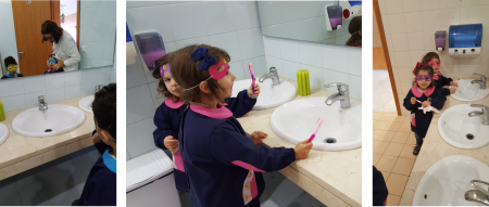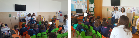 Na manhã do dia 17 de janeiro, as salas do Jardim de Infância receberam a visita de duas enfermeiras da Equipa de Unidade de Cuidados na Comunidade, do Programa Saúde Escolar, para falar de "Higiene e Saúde Oral". Numa conversa informal e após a visualização de um pequeno filme animado, falou-se na importância da adoção de comportamentos saudáveis como fatores determinantes na prevenção de doenças. No que toca a comportamentos alimentares, aprendemos que devemos seguir uma alimentação equilibrada e variada, limitando por isso o consumo de produtos com muito açúcar e reservando-os para os chamados "dias de festa". No sentido de reforçar a importância de uma correta escovagem dos dentes, contamos com a supervisão das Enfermeiras, que nos ajudaram a aperfeiçoar as nossas técnicas de lavagem. Iniciativas como esta são uma mais-valia para transmitir às nossas crianças novos conhecimentos e valores que os levem sempre a tomar as melhores decisões em prol da sua saúde e bem-estar. |