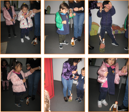 No final da peça, tivemos a oportunidade de brincar e aprender a manipular as marionetas controlando, através dos seus fios, os mais diversos movimentos. E que divertido foi! |