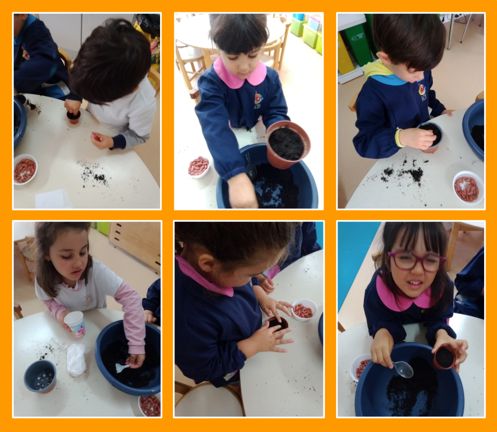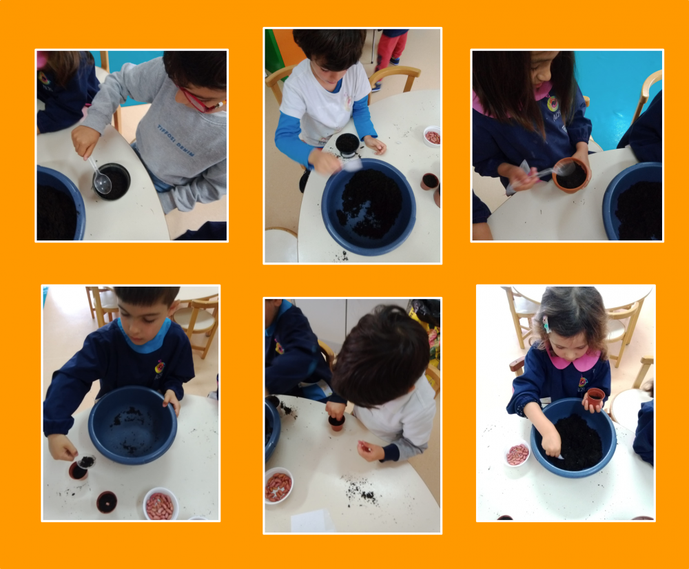 Integrado no projeto educativo "A magia dos livros" , "João e o Pé de Feijão", um dos mais belos contos clássicos infantis recheado de aventuras, foi a história escolhida para ser trabalhada e ouvida pelas crianças da sala 1. Reutilizando os vasinhos que trouxemos com os catos/suculentas que estão agora plantados no canteiro da nossa varanda, plantamos em cada um deles um feijão e acompanhamos bem de perto o seu crescimento, desenhando e registando tudo o que aconteceu ao feijão durante este período. |