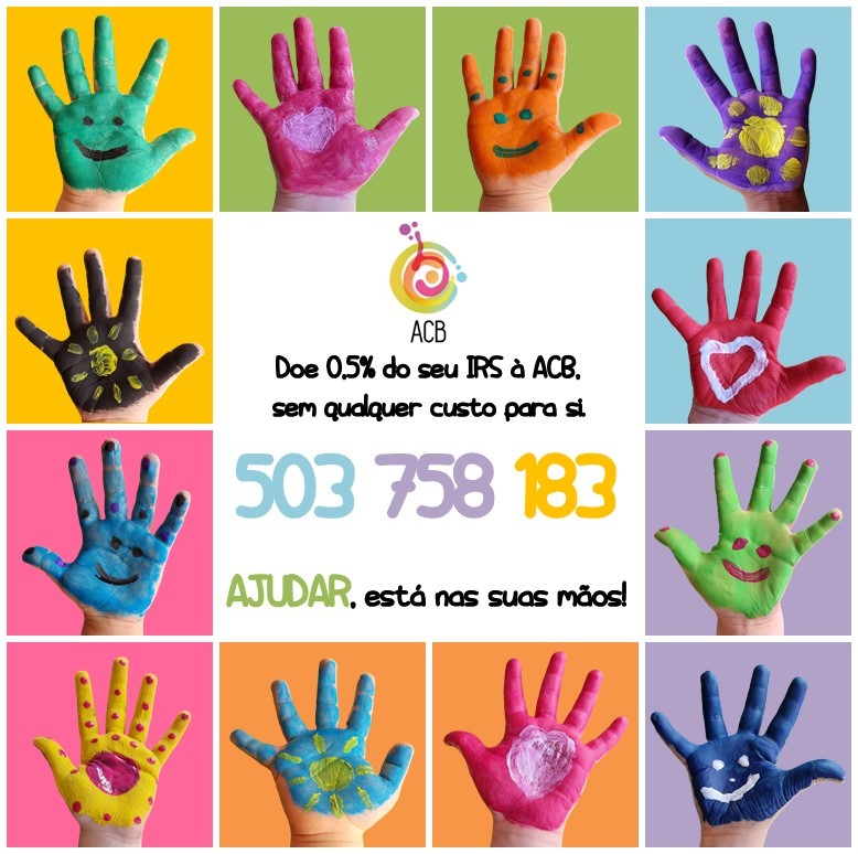 Sabia que ao preencher o seu IRS pode doar 0,5% à ACB sem custos associados? Gostaríamos de contar com a sua estimada ajuda, aquando da apresentação da declaração de IRS. Trata-se de um valor do seu imposto, neste caso 0,5% que iria ser a favor do Estado. Basta apenas que: no preenchimento do IRS Automático (área Pré-Liquidação) como na Declaração de Rendimento (Quadro 11 do Modelo 3), indique o NIF 503 758 183 e selecione 'IPSS' como entidade beneficiária e, desta forma tão simples consignará 0,5% do seu IRS à ACB. Seja solidário, agradecemos o seu apoio!