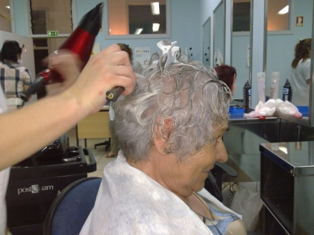 Os utentes do SAD - Serviço de apoio domiciliário têm oportunidade de semanalmente serem presenteados com uma ida ao cabeleireiro. Esta atividade, integrada no plano de 2012 pretende promover momentos de convívio, aumentando a auto estima e valorização pessoal dos utentes. Dinamizada pelos Assistentes Sociais da ACB, esta iniciativa tem ainda a colaboração dos estagiários do curso de cabeleireiro da Escola Profissional DOISEFE, em cujas instalações decorre esta atividade. Numa primeira avaliação muito positiva, os utentes mostraram-se agradados com esta participação, como Elisa Faria que confessou " Isto faz-nos bem, sairmos de casa e falarmos com outras pessoas". |