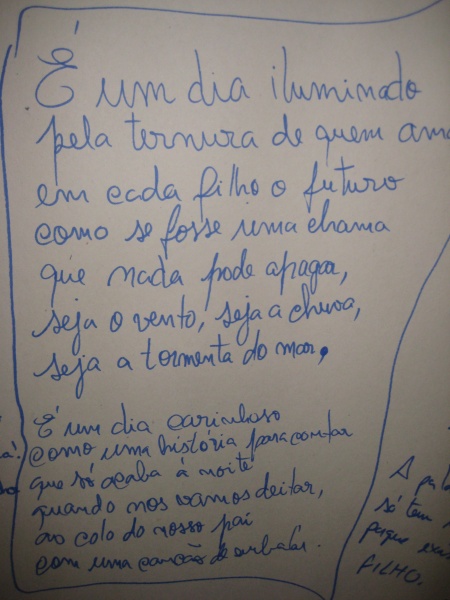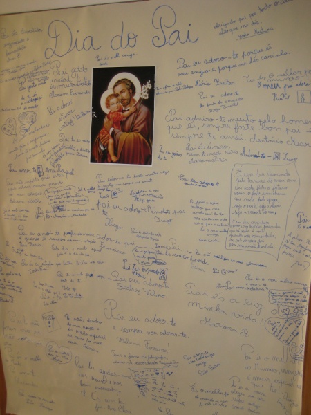 O CATL - Centro de Atividades de Tempos Livres a promoveu a homenagem aos pais com a criação de um quadro onde filhos e pais trocaram dedicatórias entre si. Sobre a foto de S. José e entre frases de carinho, companheirismo e amor, o quadro que honra o PAI eterniza em palavras os sentimentos dos pais e dos filhos do CATL. |