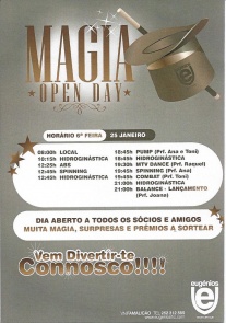 O ginásio Eugénio´s Health Club, protocolado com a ACB e sediado na rua Padre Aviz de Brito nº 189 em Calendario, irá realizar um OPEN DAY no próximo dia 25 de janeiro, onde todos os associados da ACB poderão disfrutar durante um dia e de forma gratuita, de um programa especial de aulas em grupo, sala de cardio-musculação, piscina (hidroginástica), banho turco, sauna e jacuzzi, para além de outras surpresas e sorteio de prémios. Para mais informações, contacte a empresa através do 252312585 / 911182532, por e-mail: eugenioshc@gmail.com ou visitando a página web em ww.eugenioshc.com. |
