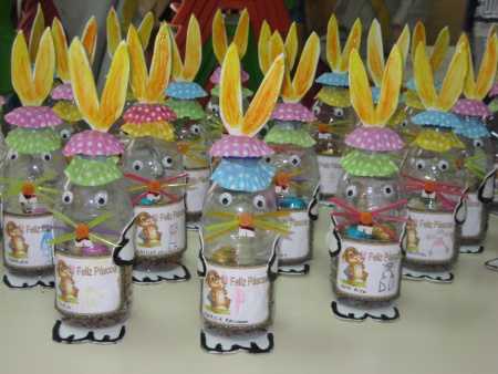 As crianças do Jardim de Infância, da sala 2, realizaram um coelho da Páscoa com o objetivo de comemorar esta época e reutilizar materiais. Com uma garrafa, botões, palhinhas e papel elaboraram uma obra de arte.