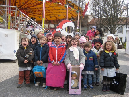 A viagem de comboio e de carrocel foi uma atividade muito divertida.