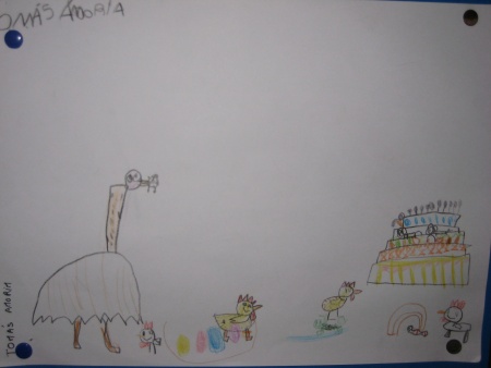 Uma história no parque. A galinha cansada que lhe comessem os ovos foi para a floresta, fez um ninho onde pôs um ovo e foi procurar comida. Quando regressou tinha no ninho muitos ovos de vários tamanhos mas ela decidiu choca-los todos como se fossem seus. Passado algum tempo nasceu um papagaio, uma serpente, uma avestruz, um crocodilo e um pinto. A galinha apesar de ter filhos todos diferentes tratou-os com muito amor e carinho. |