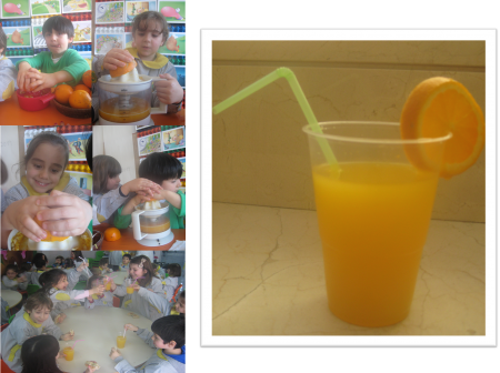 A laranja foi a fruta eleita para a tarde culinária de quinta-feira. Começamos por utilizar o sumo e a polpa das laranjas para confecionar um delicioso sumo natural para o lanche. Depois, aproveitamos as metades das cascas das laranjas (devidamente limpas) para rechear com um preparado de gelatina. O resultado final foram uns coloridos gomos de gelatina com sabor a morango e tutti-frutti. Para além de esta ser uma receita simples, prática e original, permite utilizar gelatinas de diversas cores e sabores. Esta poderá ser uma ótima sugestão para festas de aniversário! Laranja Download pdf » |