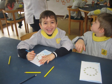 Hoje fomos à Biblioteca Municipal, assistir ao conto da história "Lenda da Europa", onde ouvimos a história de um belo príncipe, Zeus, e de uma bela princesa, Europa, que se apaixonaram. Para viver este amor foram em busca de uma ilha sossegada para viver o seu romance, assim deixaram a Ásia e passaram ao continente vizinho que naquela altura ainda não tinha nome. Passou a se chamar Europa, por causa da princesa! No fim da história cada criança pintou a Bandeira da Europa. |