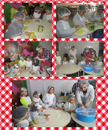 Na tarde da passada sexta-feira recebemos a visita de José Freitas, Pai de um dos nossos meninos finalistas do Jardim de Infância, o Márcio. "Zé" como gosta de ser chamado, passou a tarde connosco na cozinha e ensinou-nos a preparar pizzas caseiras e super deliciosas. Desde a preparação da massa à escolha dos ingredientes foi evidente o entusiasmo e interesse dos "nossos aprendizes", que orgulhosamente viram as suas apetitosas pizzas prontinhas mesmo a tempo do lanche no recreio. A tarde foi muito divertida e, por isso, só nos resta agradecer a visita do Pai "Zé" e esperar o seu regresso muito em breve! |