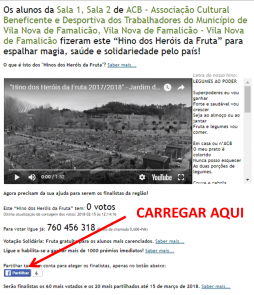 As crianças do Jardim de Infância da ACB participam pela segunda vez consecutiva no projeto “Heróis da Fruta - Lanche Escolar Saudável”, promovido pela APCOI - Associação Portuguesa Contra a Obesidade Infantil. Esta iniciativa visa incentivar e reforçar as crianças portuguesas (até aos 10 anos) para a ingestão diária de fruta, promovendo hábitos alimentares saudáveis na prevenção do excesso de peso e restantes doenças associadas. No âmbito desta iniciativa foi criado o “Hino da Fruta". Convidamos todos a ver, ouvir e a votar no nosso hino através do número 760 456 318 (custo de 0,60€ + IVA) ou clicando no botão "partilhar" disponível no link: http://www.apcoi.pt/heroisdafruta7/web/hinodafruta/?idhino=94 A sua participação é muito importante para fazer do nosso hino um dos finalistas! |