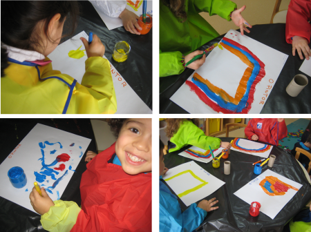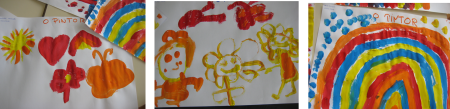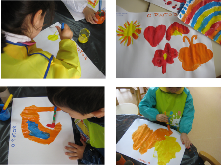 Numa outra atividade, elegemos os pincéis e as tintas como os "reis da festa". Demos largas à imaginação, criando bonitas e coloridas pinturas e, a avaliar pelos resultados finais, parece-nos que temos autênticos artistas. |