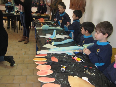No âmbito das comemorações do Dia Mundial do Teatro e a convite da Divisão da Cultura do Município de Famalicão, as crianças finalistas do jardim de infância, na manhã de 27 de março, deslocaram-se à sede da junta de freguesia de Seide S. Paio para a realização de um workshop de marionetas de esponja. Este workshop, intitulado de “monstros marinhos” e orientado pela companhia de Teatro e Marionetas de Mandrágora, proporcionou a cada criança produzir a sua “criatura” animal e entre recortes, dobragens e colagens o resultado final não poderia ter sido melhor: brinquedos simples, originais e bem divertidos. Já no final do workshop, fomos desafiados a soltar a imaginação, criando e dramatizando uma pequena história que teve como “estrelas” principais as nossas marionetas. Este tipo de iniciativas são uma excelente ferramenta educativa, não só porque permite desenvolver a criatividade e imaginação dos mais pequenos, como também aperfeiçoa a capacidade de trabalho em equipa, a concentração e a comunicação. O nosso muito obrigada ao Município de Famalicão por este convite! |