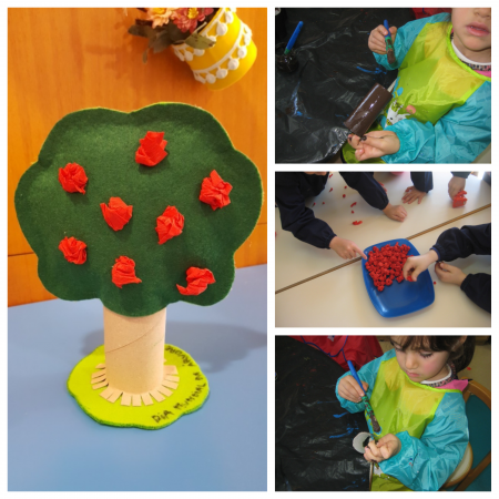 Certamente já todos ouvimos a expressão “as árvores são o pulmão do mundo” e, de facto, esta designação não poderia ter sido melhor escolhida. Hoje, 21 de março, no dia em que um pouco por todo o mundo se celebra um dos mais valiosos recursos naturais: as árvores, não poderíamos deixar de falar na necessidade urgente da preservação da biodiversidade, consciencializando os mais pequenos para a importância do equilíbrio ambiental e ecológico. Como forma de assinalar este dia, cada criança da sala 2 do jardim de infância colocou as mãos na terra e criou uma pequena sementeira com ervas aromáticas. Seguramente que num futuro próximo, graças à atenção, cuidado e carinho que as nossas crianças depositarão na sua sementeira, os cozinhados lá de casa vão ganhar um sabor especial, resultado do uso do cebolinho e dos orégãos semeados. Já na sala 1 do jardim de infância, através da utilização dos mais diversos materiais “amigos” do ambiente, cada criança construiu de raiz uma bonita macieira. Curiosamente, após alguma pesquisa descobrimos que a macieira era talvez a mais antiga árvore que tenha sido cultivada. |