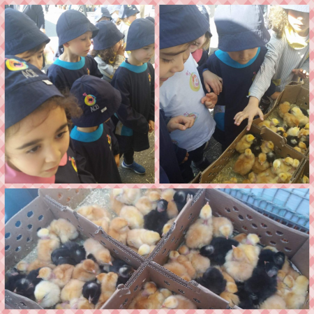 Na passada manhã de 11 de abril fomos “explorar” aquele que é um dos mais importantes acontecimentos semanais na cidade de Famalicão. Tradicionalmente à quarta-feira, a nossa cidade ganha mais pessoas e, inevitavelmente, mais movimento com a realização da feira semanal. Indo de encontro ao tema do Projeto Educativo "Animais... e muito mais", descobrimos os pintainhos, coelhos, perdizes e patos que fizeram as delícias dos mais pequenos. Próprio nestas idades, a curiosidade natural e o interesse acerca dos hábitos e características destes animais conseguiram prender a atenção de todos. E porque o sentido do "tato" é um enorme estímulo no processo do conhecimento, as habituais "festinhas" aos animais não puderam nem ficaram esquecidas. |