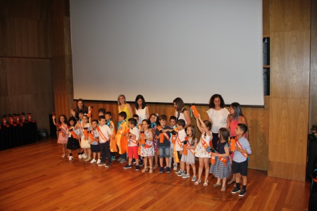 Realizou-se no final da tarde do dia 28 de junho, no Pequeno Auditório da Casa das Artes, a Festa de Finalistas das valências de Jardim de Infância e CATL. Num ambiente descontraído e com a presença de familiares e amigos, os nossos finalistas celebraram o fim de uma etapa e o começo de uma outra que se avizinha de mudanças e novos desafios. Para além das equipas educativas homenagearem os 22 finalistas de Jardim de Infância e os 15 finalistas de CATL com a entrega de uma faixa e um diploma, foram ainda apresentados dois vídeos que compilaram os momentos de alegria, aprendizagem e amizade que acompanharam os percursos das nossas crianças pela ACB. De salientar, este ano, a presença do grupo de 7 crianças Bi-finalistas do Jardim de Infância que participaram, juntamente com a equipa educativa, na entrega das faixas aos restantes colegas. A atuação dos finalistas com o “Hino da ACB” marcou, com emoção, o encerramento deste espetáculo com "chave de ouro". Aos protagonistas desta grande festa, desejos de muito sucesso e um futuro brilhante repleto de conquistas e oportunidades! |