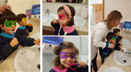 Na manhã do dia 17 de janeiro, as salas do Jardim de Infância receberam a visita de duas enfermeiras da Equipa de Unidade de Cuidados na Comunidade, do Programa Saúde Escolar, para falar de "Higiene e Saúde Oral". Numa conversa informal e após a visualização de um pequeno filme animado, falou-se na importância da adoção de comportamentos saudáveis como fatores determinantes na prevenção de doenças. No que toca a comportamentos alimentares, aprendemos que devemos seguir uma alimentação equilibrada e variada, limitando por isso o consumo de produtos com muito açúcar e reservando-os para os chamados "dias de festa". No sentido de reforçar a importância de uma correta escovagem dos dentes, contamos com a supervisão das Enfermeiras, que nos ajudaram a aperfeiçoar as nossas técnicas de lavagem. Iniciativas como esta são uma mais-valia para transmitir às nossas crianças novos conhecimentos e valores que os levem sempre a tomar as melhores decisões em prol da sua saúde e bem-estar. |