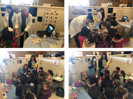 Para assinalar o 10º aniversário do novo espaço da Urgência Médico-Cirúrgicao CHMA organizou diversas iniciativas, entre as quais o Hospital Virtual. Este é, por excelência, o local que proporciona às crianças um contacto mais próximo com a realidade do serviço de Urgência, bem como com os profissionais que lá trabalham. Neste sentido, na manhã do dia 17 de janeiro as crianças, da sala 1 do jardim de infância, acompanhadas do seu “boneco” preferido simularam um atendimento na urgência deste Hospital. O entusiamo e a curiosidade dos mais pequenos cresciam à medida que estes “saltavam” de especialidade em especialidade. Desmitificando a síndrome da “bata branca”, esta iniciativa promove diretamente e de forma sublime a familiarização dos mais pequenos com o ambiente hospitalar e com os profissionais de saúde. |