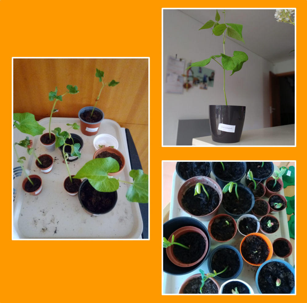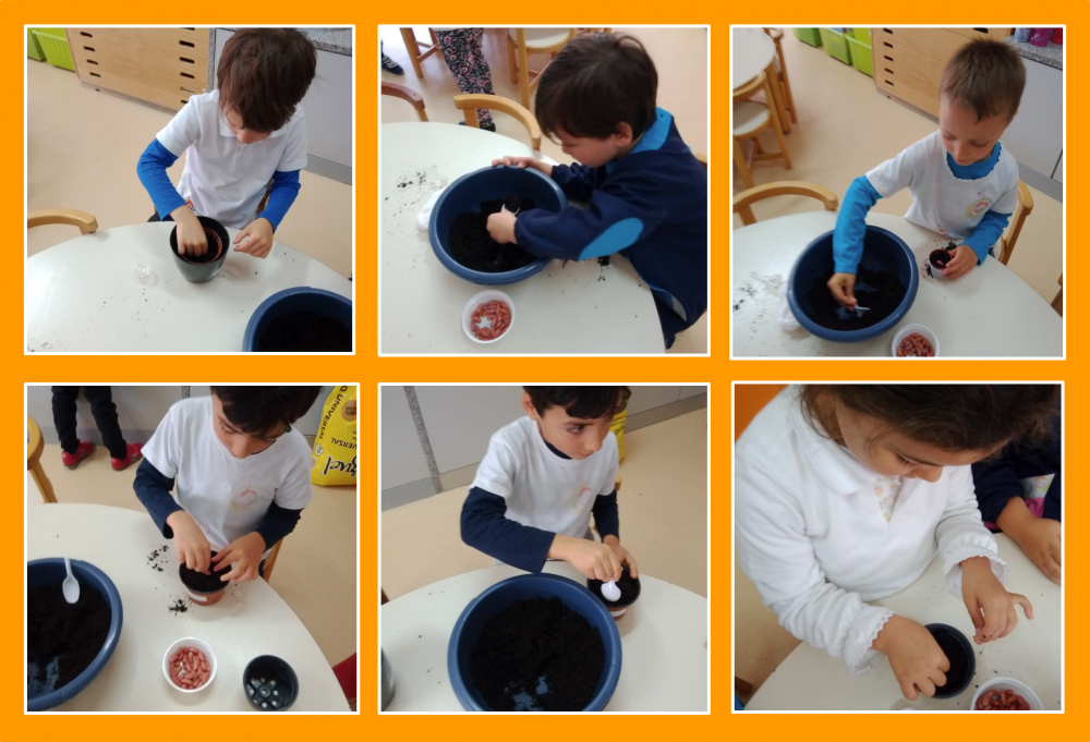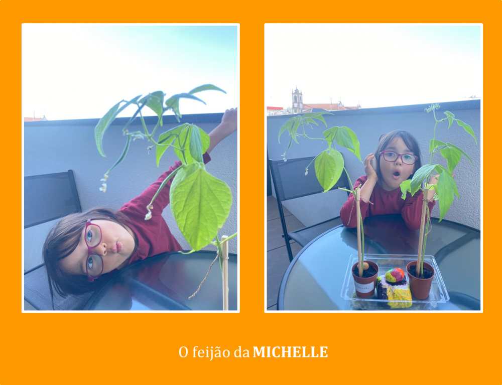 Integrado no projeto educativo "A magia dos livros" , "João e o Pé de Feijão", um dos mais belos contos clássicos infantis recheado de aventuras, foi a história escolhida para ser trabalhada e ouvida pelas crianças da sala 1. Reutilizando os vasinhos que trouxemos com os catos/suculentas que estão agora plantados no canteiro da nossa varanda, plantamos em cada um deles um feijão e acompanhamos bem de perto o seu crescimento, desenhando e registando tudo o que aconteceu ao feijão durante este período. |