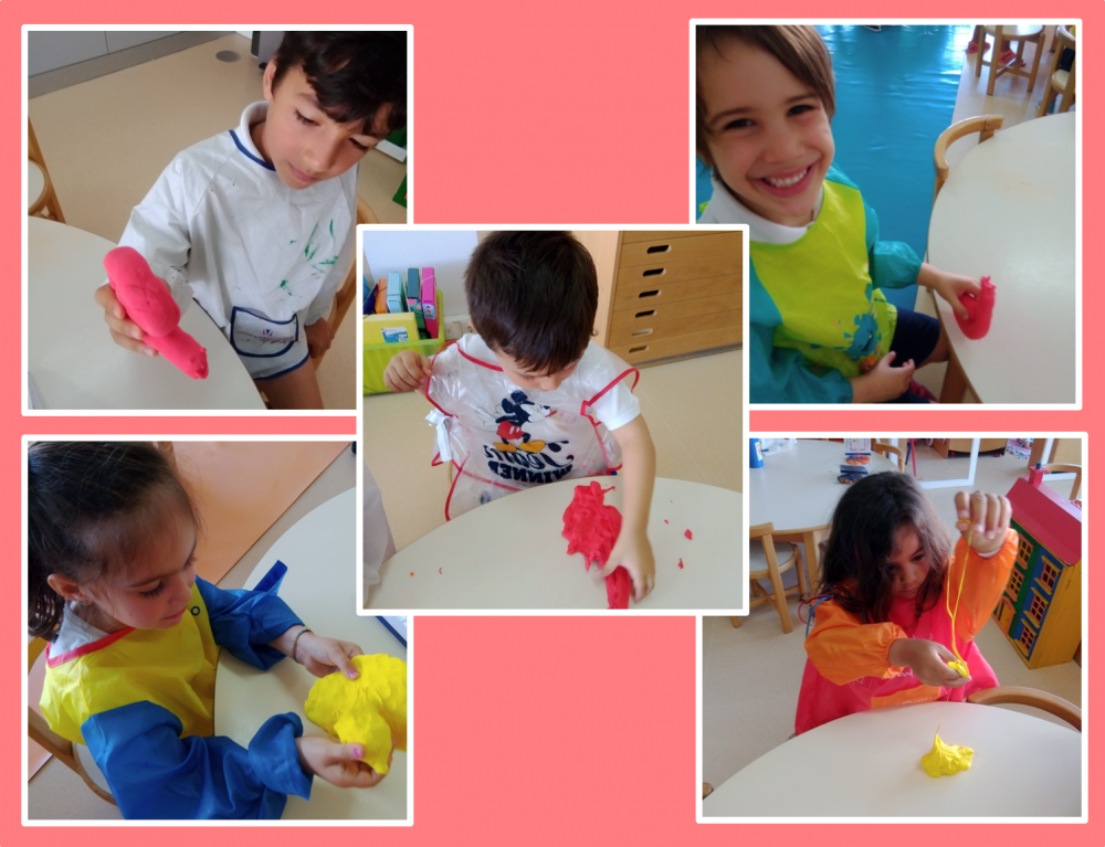 Se há coisa de que as crianças gostam é de sujar as mãos com tinta. E se, aliado a isto ainda puderem brincar com plasticina? Tintas e plasticina, parecem-nos os dois requisitos chave para fazer desta atividade educativa irresistível um verdadeiro sucesso. A plasticina ecológica, amiga do ambiente, permitiu-nos exercitar os músculos das mãos de diversas maneiras, uma vez que ela pode ser torcida, espremida, cortada e amassada, vezes sem conta!!! Depois da plasticina pronta, chegou a hora de fazer arte. Pintamos a nossa mão com tinta, para a podermos carimbar na plasticina. Quem disse que não podemos trabalhar a nossa coordenação motora de uma forma tão divertida quanto esta? |