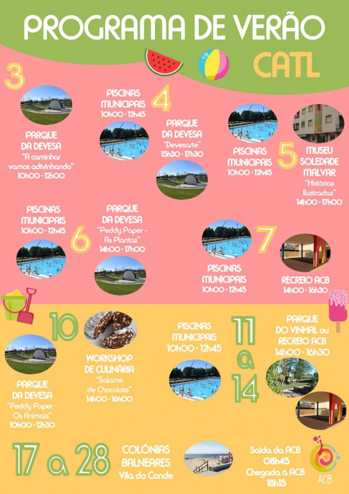 O Centro de atividades de tempos livres, como já nos tem habituado, elaboraram um programa de Férias de Verão recheado de atividades lúdico pedagógicas para ocupar o tempo livre, dos nossos jovens. |