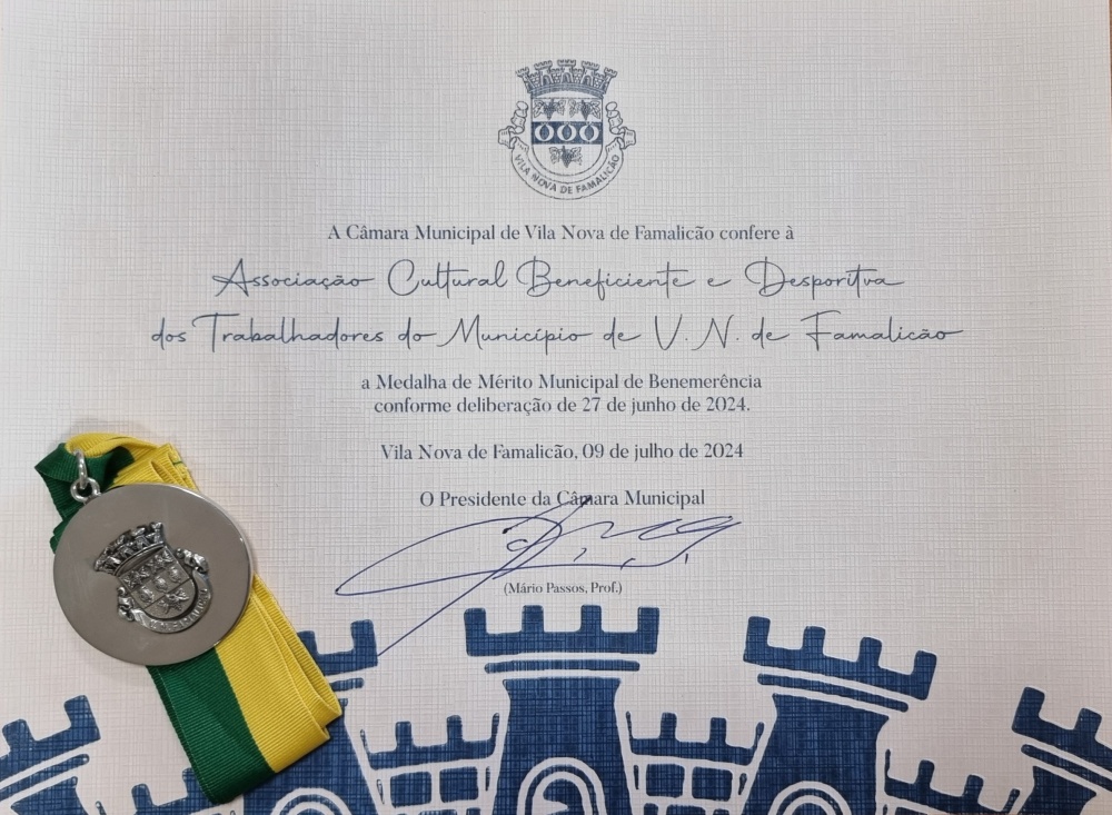 No ano em que o Município de Famalicão celebra 39 anos de elevação de Vila a Cidade, a ACB foi uma das Instituições reconhecidas, na sessão solene que decorreu a 9 de julho na Casa das Artes. Pelas mãos do atual Presidente da Direção da ACB, Miguel Marinho, a ACB recebeu a Medalha de Mérito Municipal de Benemerência, conferida pela Câmara Municipal de Vila Nova de Famalicão. Este reconhecimento é resultado do trabalho, da dedicação e do esforço inestimável de dirigentes e colaboradores que contribuíram para o relevante desenvolvimento e crescimento da ACB, que conta já com mais de 25 anos de existência.