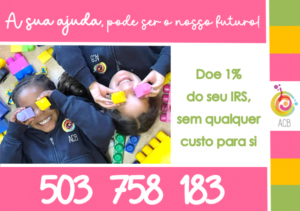 Sabia que ao preencher o seu IRS pode doar 1% à ACB sem custos associados? Gostaríamos de contar com a sua estimada ajuda, aquando da apresentação da declaração de IRS. E, para isso, basta apenas que: no preenchimento do IRS Automático (área Pré-Liquidação) como na Declaração de Rendimento (Quadro 11 do Modelo 3), indique o NIF 503 758 183 e selecione 'IPSS' como entidade beneficiária e, desta forma tão simples consignará 1% do seu IRS à ACB. Seja solidário, agradecemos o seu apoio! |